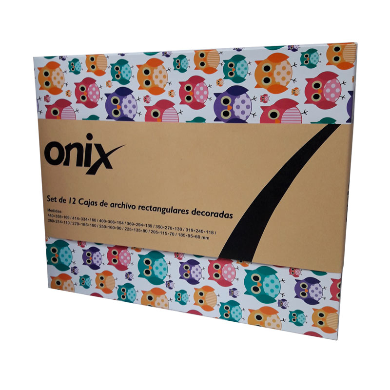SKU: R02000.3 CODIGO DE BARRA: 7798298956231 12 CAJAS BUHO – 440X358X169 / 414x334x160/ 400x306x154/369x294x139/350x270x130/319x240x118289x214x110/ 270x185x100/ 250x160x90/ 225x135x80/ 205x115x70/185x95x60 ONIX
