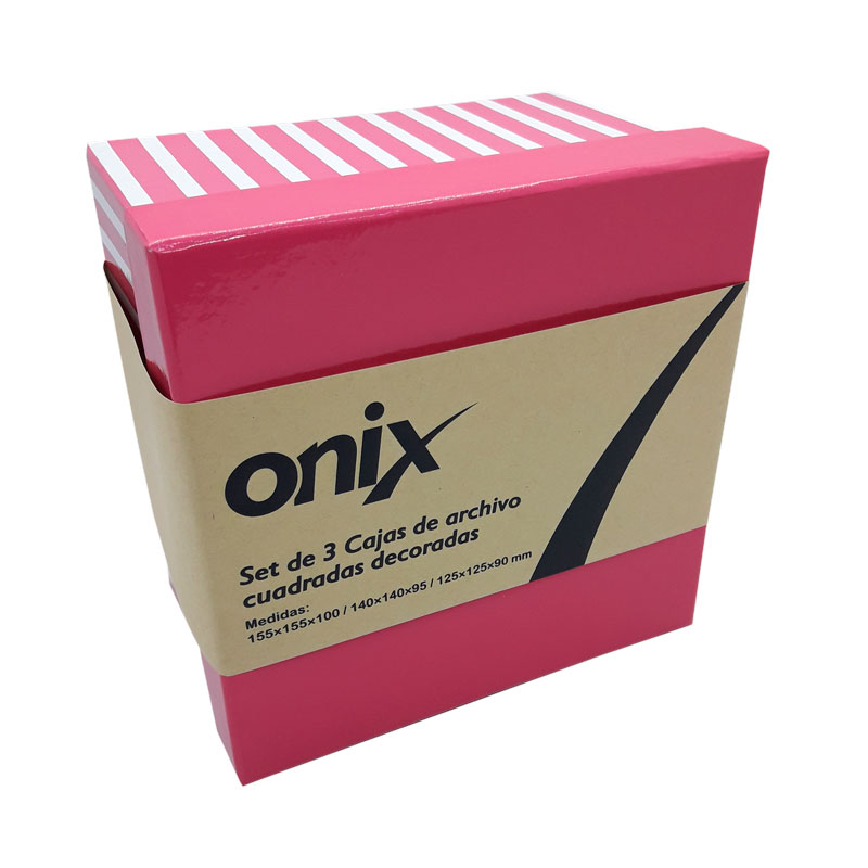 SKU: R02003.0 CODIGO DE BARRA: 7798298956507 3 CAJAS RAYAS ROSA 155x155x100/140x140x95/125x125x90 ONIX