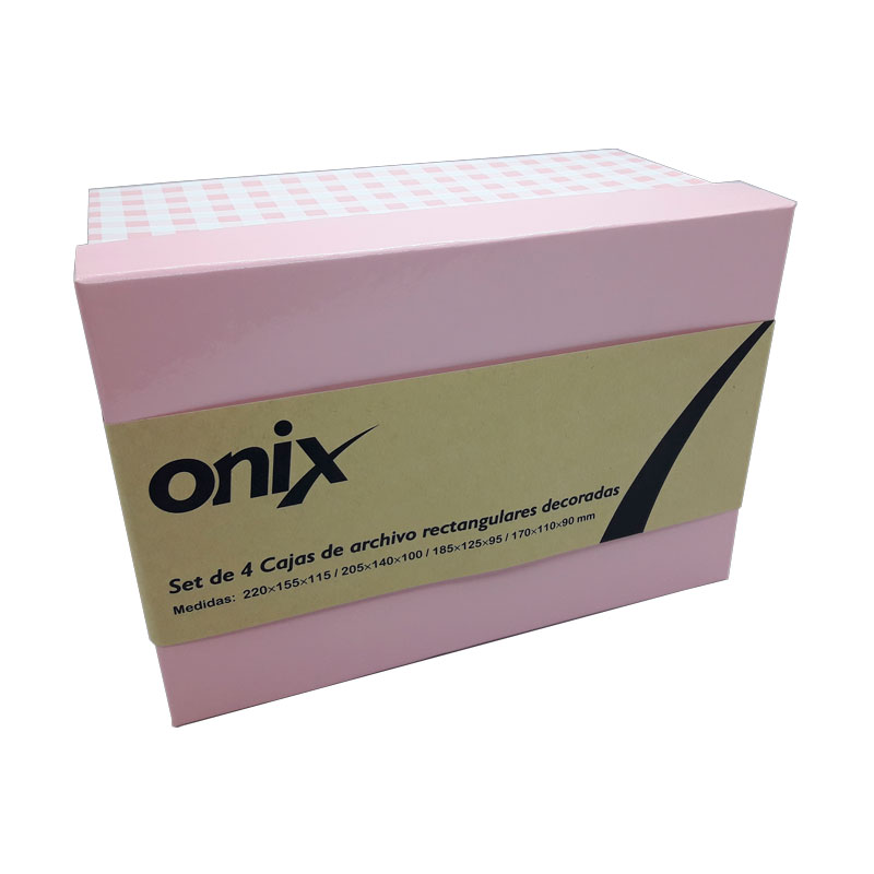 SKU: R02002.0 CODIGO DE BARRA: 7798298956408 4 CAJAS CUADRILLE ROSA 220x155x115/ 205x140x100/185x125x95/170x110x90 ONIX