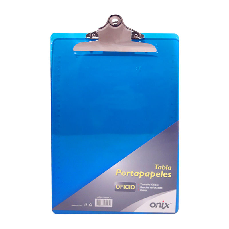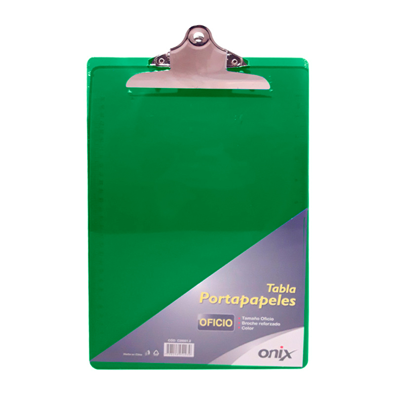 Tabla Portapapeles Acrilico con broche OFICIO Azul o Verde ONIX
