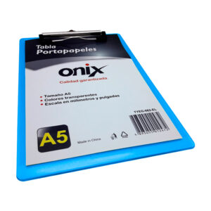 Tabla Portapapeles Acrilico con broche A5 Azul o Rosa ONIX